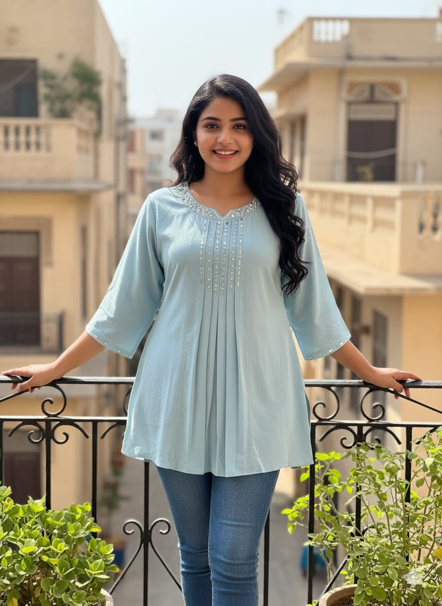 Women’s Stone work top in soft fabric. three-quarter sleeves.